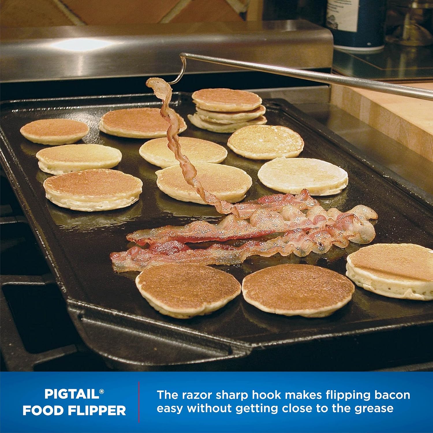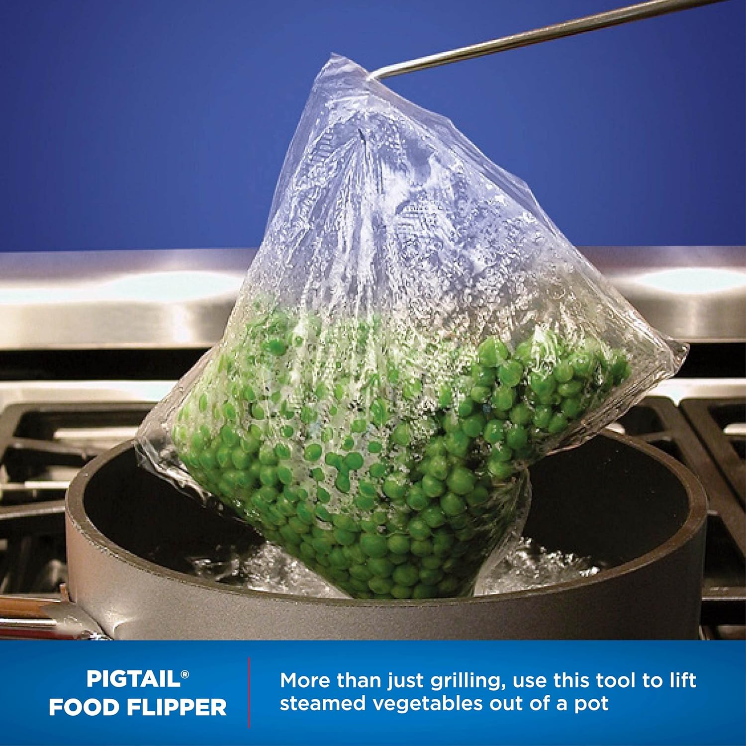 - PigTail for Grilling: Pick pickles from the jar, hot corn on the cob from boiling water or easily flip bacon in the fry pan and much more. Eliminate the need for tongs, forks and spatulas… flip steaks, chops, breasts and vegetables on the grill