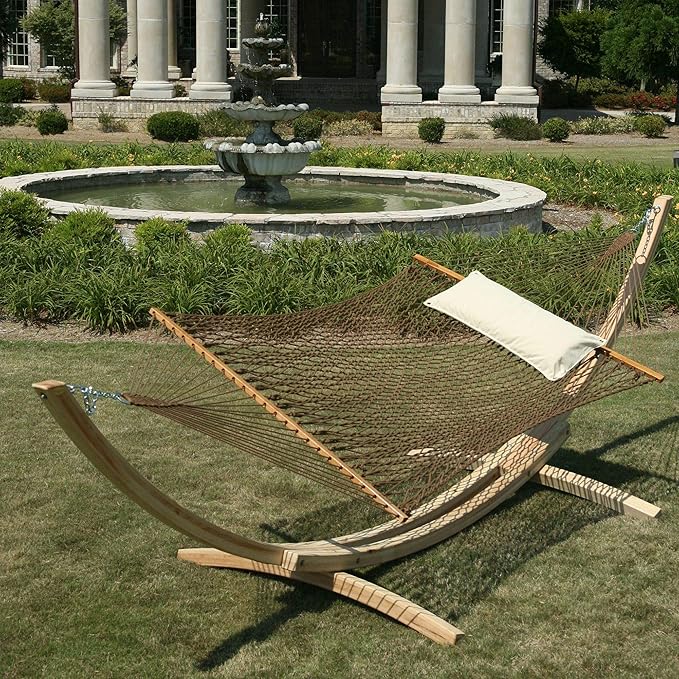 Hatteras Hammocks Deluxe Antique Brown DuraCord Rope Hammock – 13 ft. x 60 in., 2-Person, 450 lb Capacity, Cumaru Spreader Bar, Zinc-Plated Hardware – Handcrafted in The USA