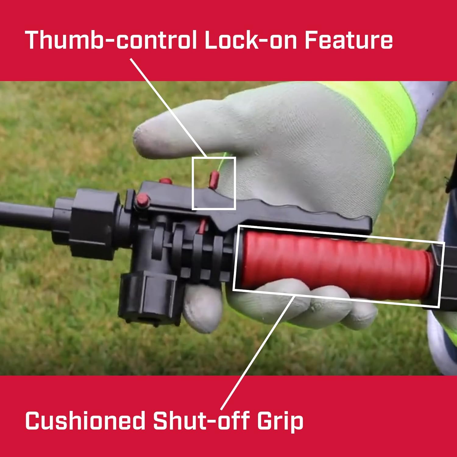 - PUMP HANDLE AND SHUT-OFF: both the pump handle and shut-off are ergonomically designed, you can comfortably lift and carry the sprayer around while working, and the cushioned-grip shut-off with a lock-on feature relieves stress on your hands from constant gripping it while spraying