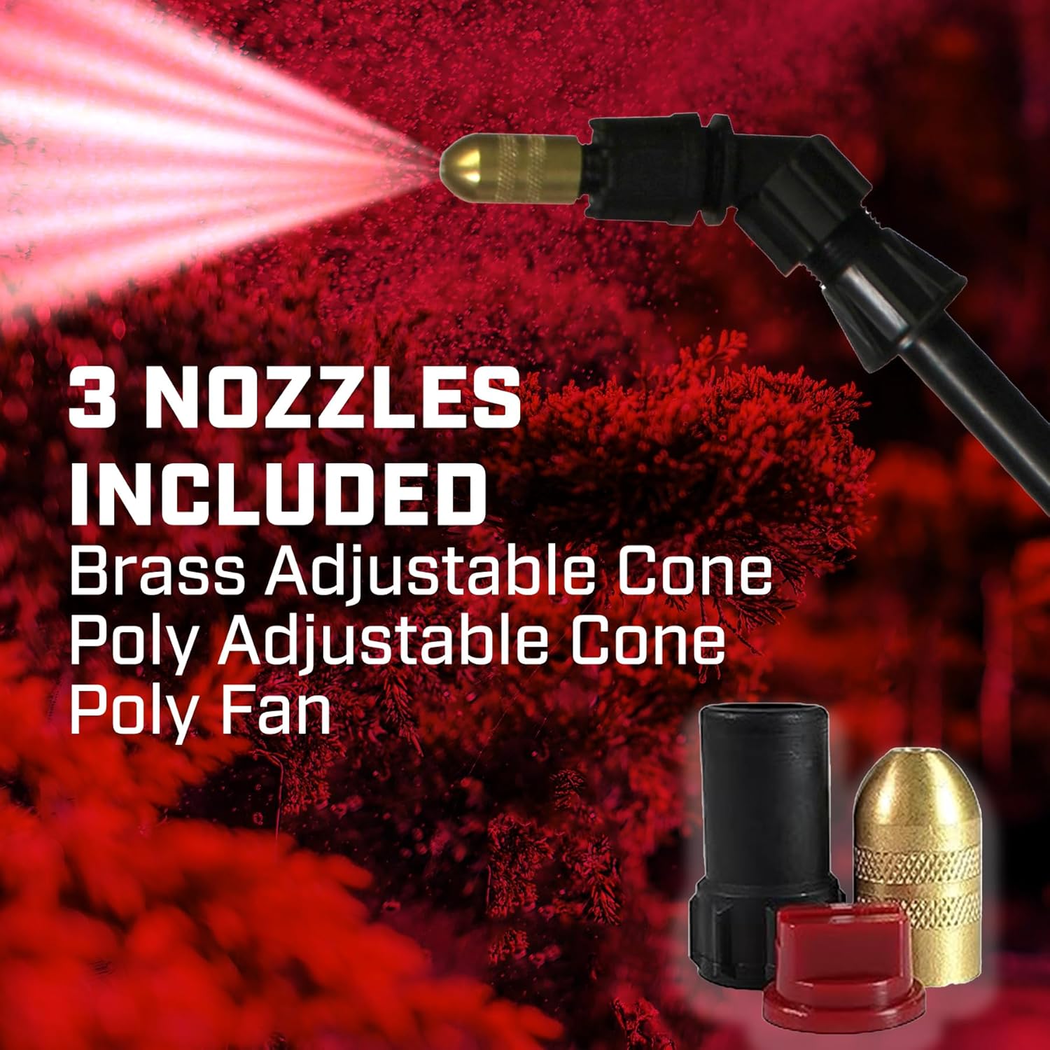 - COMPONENTS: reach further with the 20-inch poly extension wand and 48-inch PVC hose; dial in to spray a stream or shower with the adjustable poly cone nozzle or with the adjustable brass nozzle, or spray a wide fan with the poly fan tip nozzle