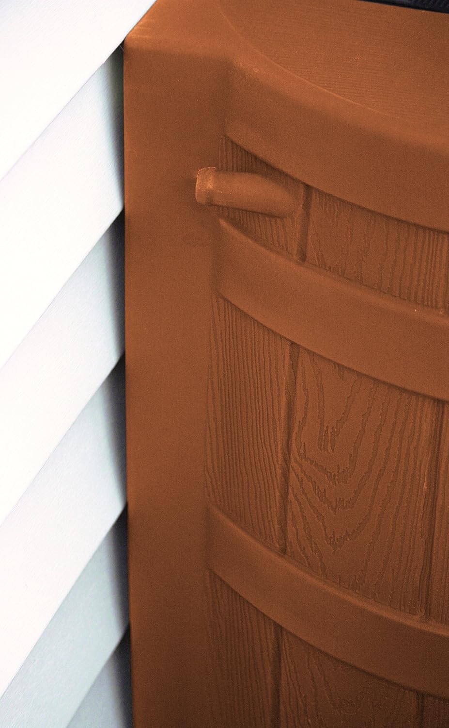 • Ensure a backup water supply for your home and garden using these faux wood rain barrels to collect rainwater from the gutter.
