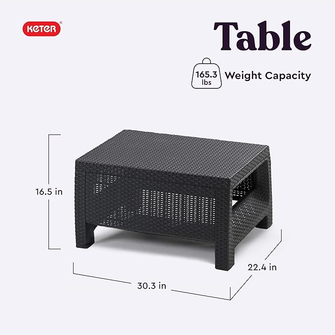 Keter Corfu 4 Piece Set All Weather Outdoor Patio Garden Furniture with Cushions, Charcoal