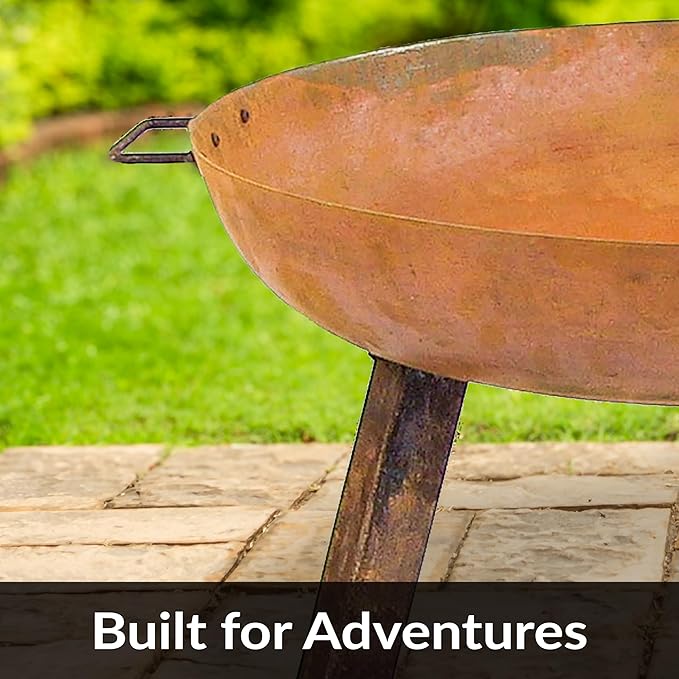 - PORTABLE DESIGN: Take this outdoor wood-burning fire pit with you to the beach, campground, or backyard with convenient handles on each side that make it easy to transport. It comes with three 10" slanted legs for extra stability.