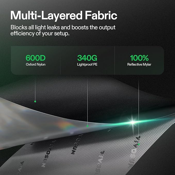 - Sturdy Build & Extra-Thick Materials: The indoor tent features robust metal poles, top bars, and tool-free corner connectors, securing the structure; The top bar supports up to 100 lbs., meeting various equipment needs; Made from premium 340g high-density fabric, the tent is waterproof, tear-resistant, and double-stitched for excellent light blockage; The inside lining designed with PE lining and Mylar walls, ensures a safer environment for your plants
