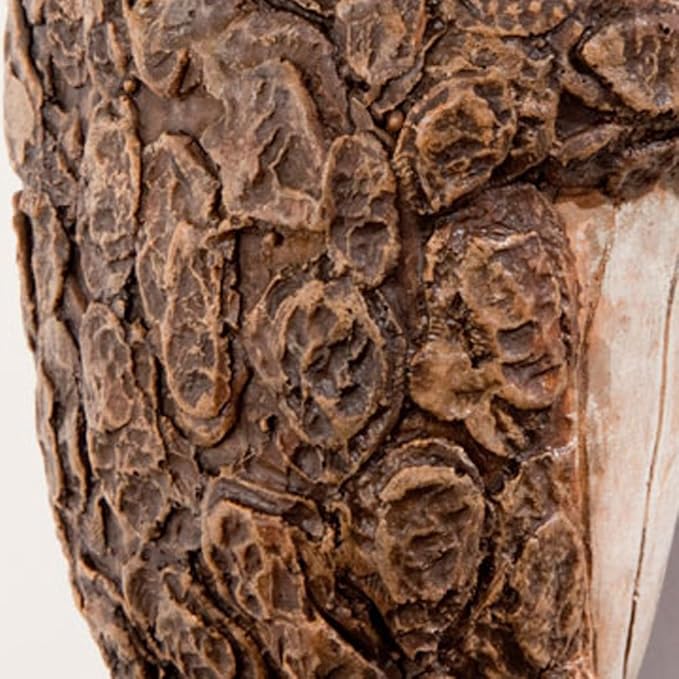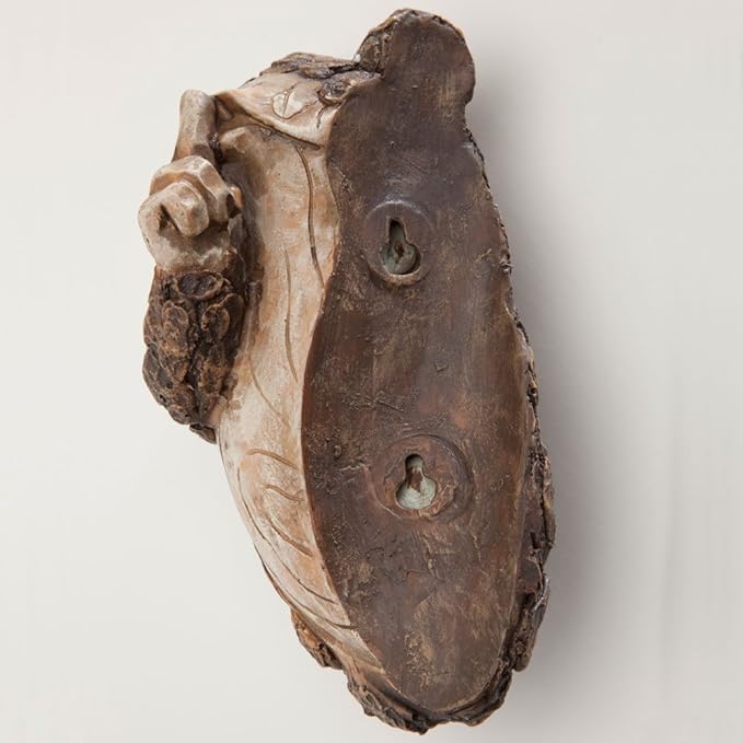 • Sculpted of polyresin, it takes on the appearance of bark and seemingly emerges from the tree trunk with a shushing motion