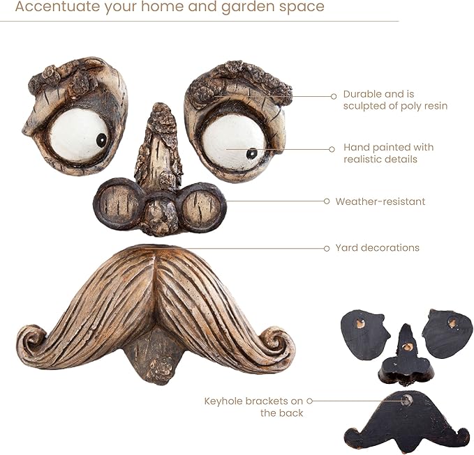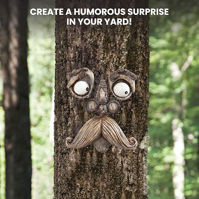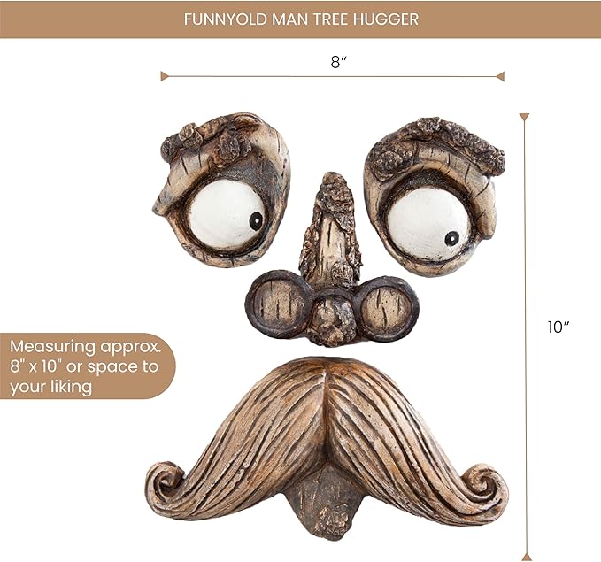 • A delightful surprise on a tree or fence, our funny old man seems to emerge from the bark or wood with watchful eyes.