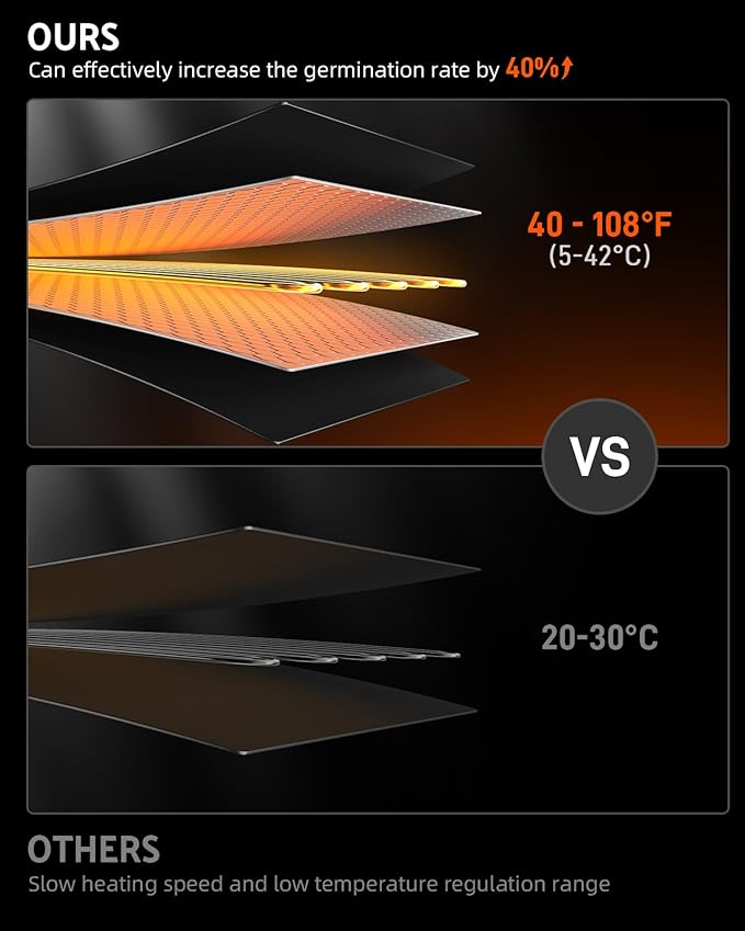• Professional reliability: warms 10-20°F above ambient room temperature. Provides constant temperature to improve vegetable, plant, herb, and flower seed germination