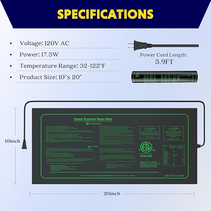 • Package include: 1 pack 10 X 20 inch seedling heat mat