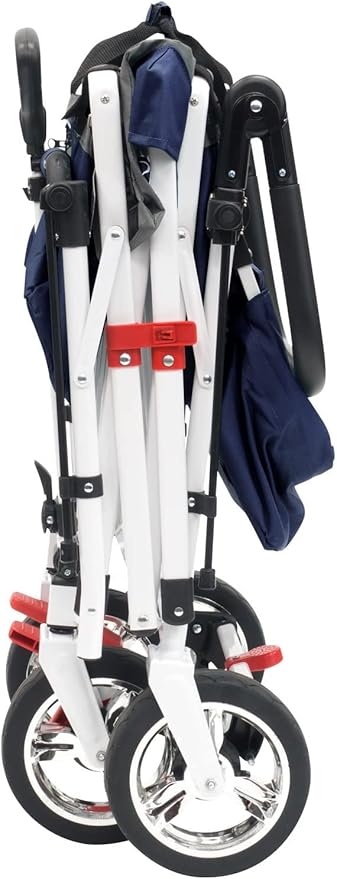 Creative Outdoor Collapsible Stroller Wagon with Seat Belts & Adjustable Handle – Foldable Utility Cart with Removable Canopy for Kids, Gear & Travel – Ideal for Beach, Park & Outdoor Fun - Navy Blue