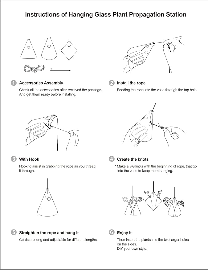 - Hanging Propagation Unique decorations:3 styles shape propagation terrariums,Water Drop, Diamond shape, Triangle shape. Easy to hang up with 3.3 ft rope ( included ).These are perfect for starting new plants to grow, like pothos, Ivy, monstera peru, propagates your small plants in style.