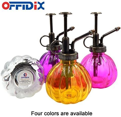 OFFIDIX Yellow Glass Watering Can Indoor, 6.3" Tall Vintage Style with Bronze Plastic Top Pump One Hand Spray Bottle