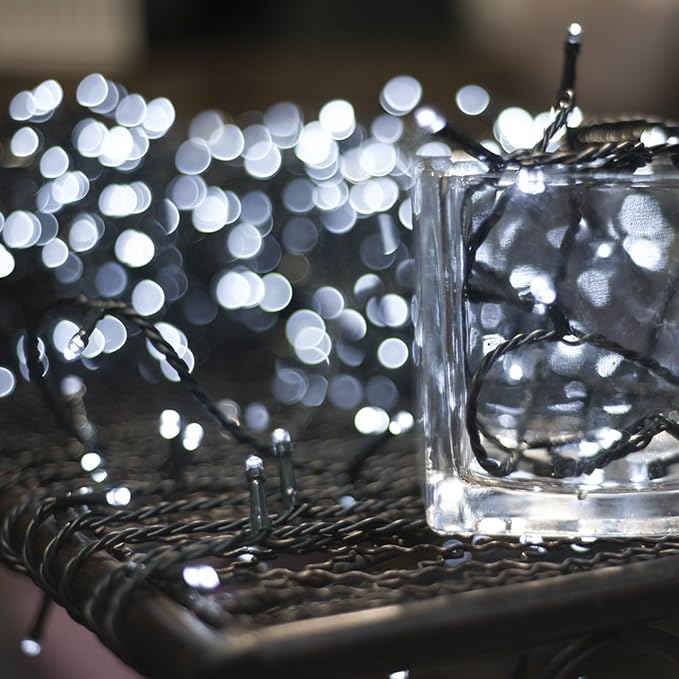 - 【Dark green cable Christmas Tree Light】Perfectly hiding on gardens, plants,and home decoration; 1000pcs white LEDs up to 336ft/103m total length with 10ft/3m leading wire, space between each LED: 4 inch/10cm.
