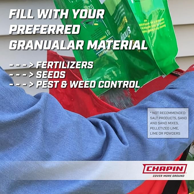 - 25-POUND CAPACITY BAG: waterproof, heavy-duty with a zipper, your preferred seed or fertilizer will be safe from rain and wind while you’re working; and an enclosed gear system also protected from the elements