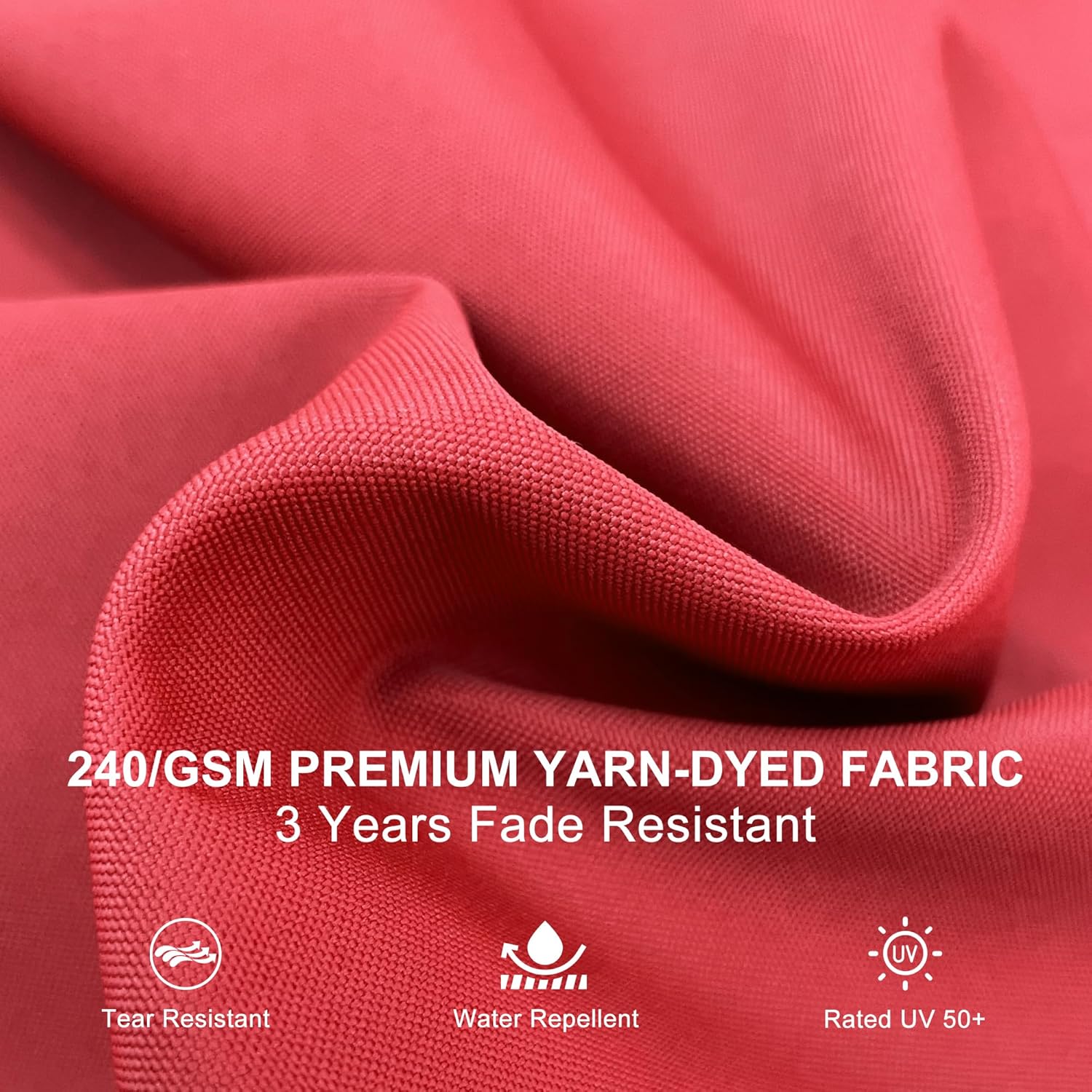 - High quality 240/gsm yarn-dyed polyester fabric, UV resistant, water-repellent and colorfast fadeless