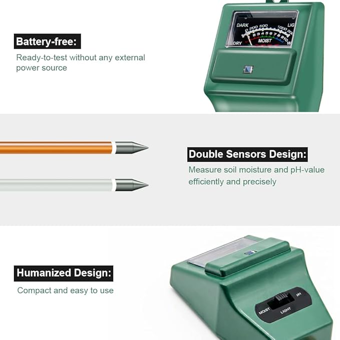 Soil pH Meter, MS02 3-in-1 Soil Moisture/Light/pH Tester Gardening Tool Kits for Plant Care, Great for Garden, Lawn, Farm, Indoor & Outdoor Use (Green)