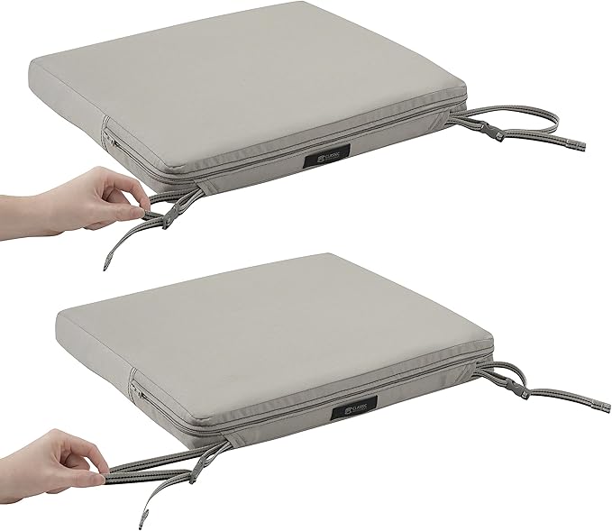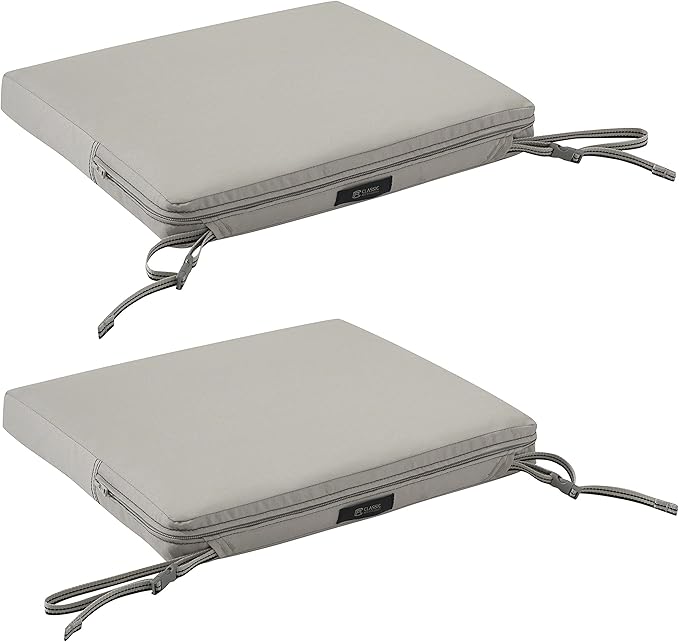 Classic Accessories Ravenna Water-Resistant 17 x 15 x 2 Inch Patio Seat Cushion, Mushroom, Chair Seat Cushion
