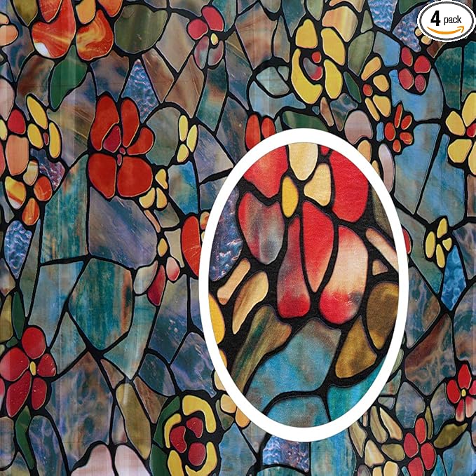 d-c-fix 346-0431-4PK Self-Adhesive Privacy Glass Window Film, Venetian Garden, 17" x 78" Roll, 4-Pack