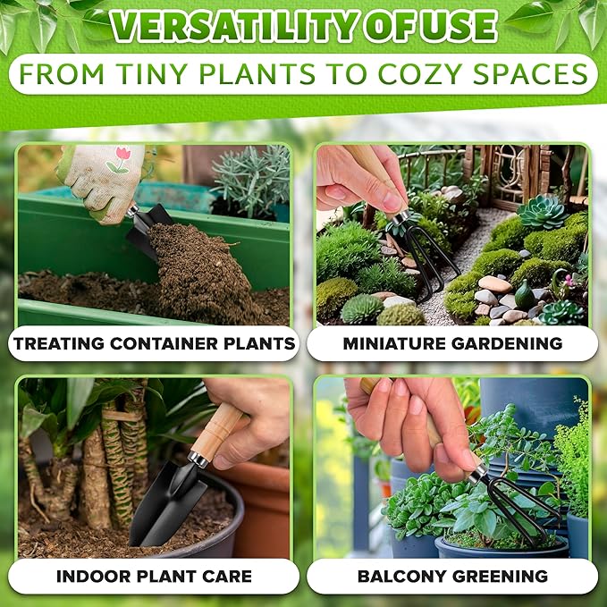 - Size of Hand Garden Tools Plant Shovel: These mini garden tool gardening tools for women are perfect home gardening as these are compact in smart in use, this hand trowel for gardening supplies is 6.7 x 1.18 inches and spade small rakes for garden beds is 5.9 x 1.18 inches and hand shovel for gardening is about 6.7 x 1.8 inches. This small gardening shovels is ideal for a variety of tasks, including digging, transplanting, pruning, loosening the soil, aerating, planting, and more.