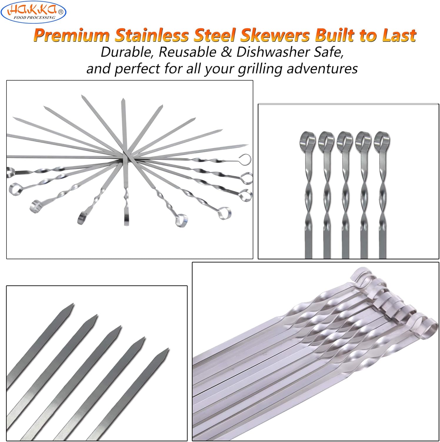 Hakka Stainless Steel Barbecue Skewers, 23" Heavy Duty Metal Skewers Large Wide Grilling Reusable Kabob Sticks with NonSlip Ring Handle,Set of 10