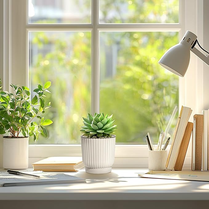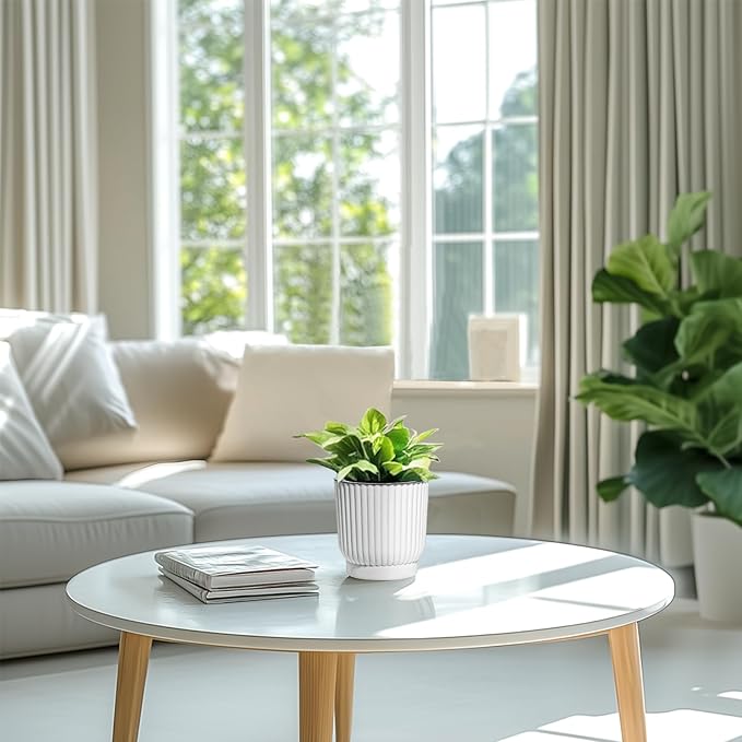 T4U 4 Inch Self Watering Pots for Indoor Plants, 6 Pack White Plastic Flower Pots for All House Plants, Flowers, African Violets