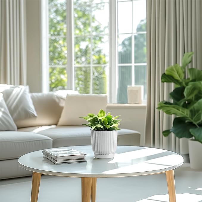 T4U 4.5 Inch Self Watering Pots for Indoor Plants, 6 Pack White Plastic Flower Pots for All House Plants, Flowers, African Violets