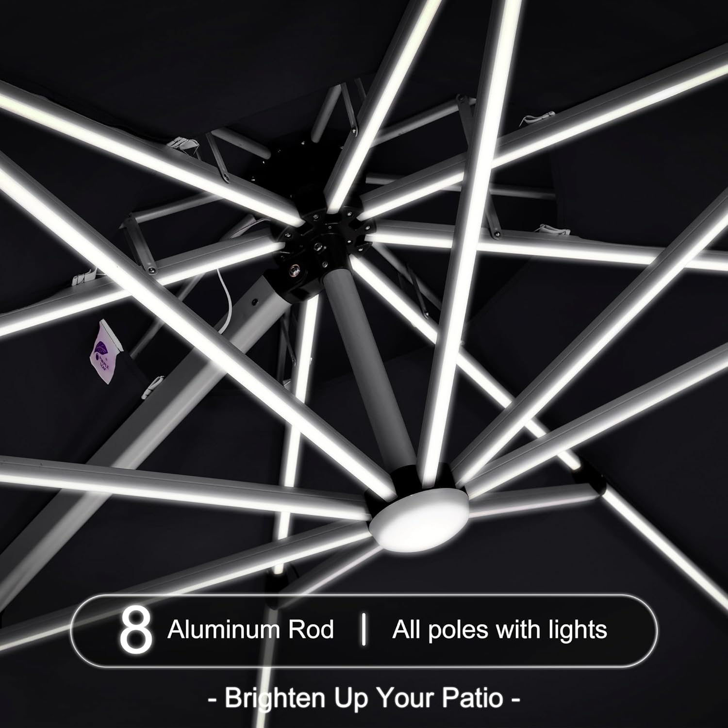 PURPLE LEAF 11ft Solar LED Patio Umbrella - Large Round Cantilever Umbrella with LED Lights, Windproof, Heavy Duty for Garden, Deck, Pool, Patio, Black