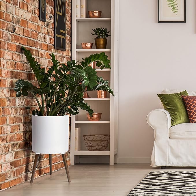 D'vine Dev 14 Inch Planter Pot with Stand, Mid-Century Tall Plant Pot with Legs for Indoor Plants, X-Large, White, 88-O-D-1