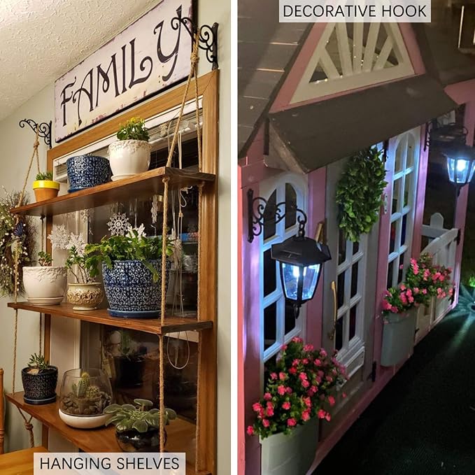 2 Pieces 8-Inch Outdoor Decorative Iron Wall Hooks for Hanging Lanterns Indoor Plants Hummingbird Feeders, Black