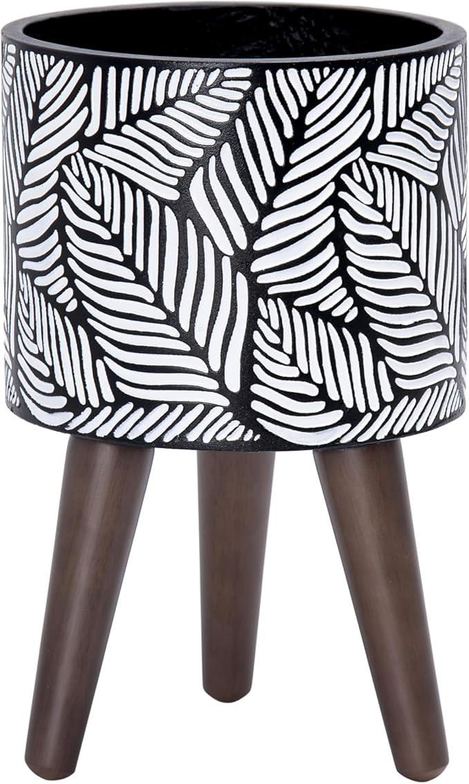 D'vine Dev 8 Inch Planter Pot with Stand, Mid-Century Tall Plant Pot with Legs for Indoor Plants, Small, White/Grey, 88-L-A-7