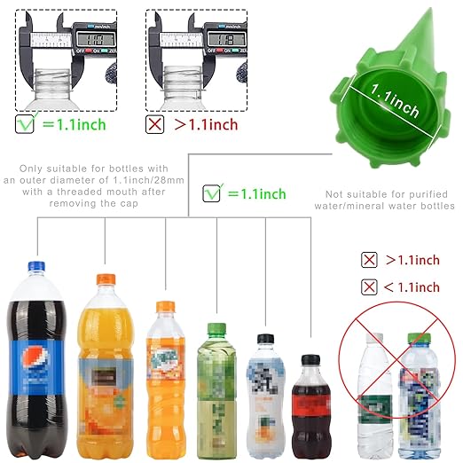 - Warning: Compatible with all 1.1 inch/2.8 cm inner diameter, suitable for most beverage bottles, not suitable for mineral water and purified water bottles. (Measure the inner diameter of the bottle including the thread size before installation)