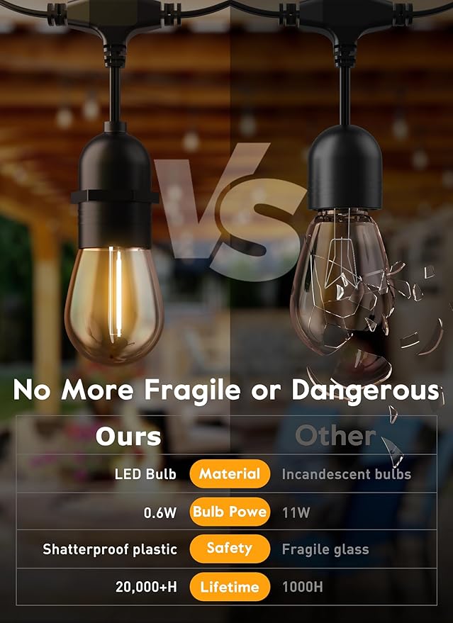 - Easy to installation: S14 LED light bulbs are the perfect combination of modern technology and vintage styling, you just need to screw bulbs into the empty sockets, then you can enjoy the vintage atmosphere