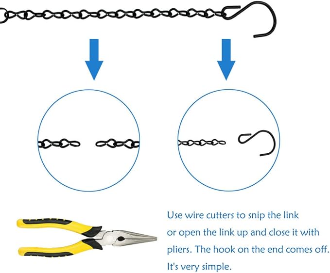 - ✅ADJUSTABLE LENGTH: Hanging chain for bird feeders, you can shorten or extend or loop the chain according to the clips on it, which help you meet various needs in those feeders which have different heights, plant hangers outdoor easy to install and remove