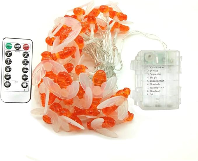 • 40 Bee Shaped LED lights, Total length 6m/19.5ft,Lighting Mode: 8 Setting controller with memory chip, includes one steady on and 7 flashing modes.