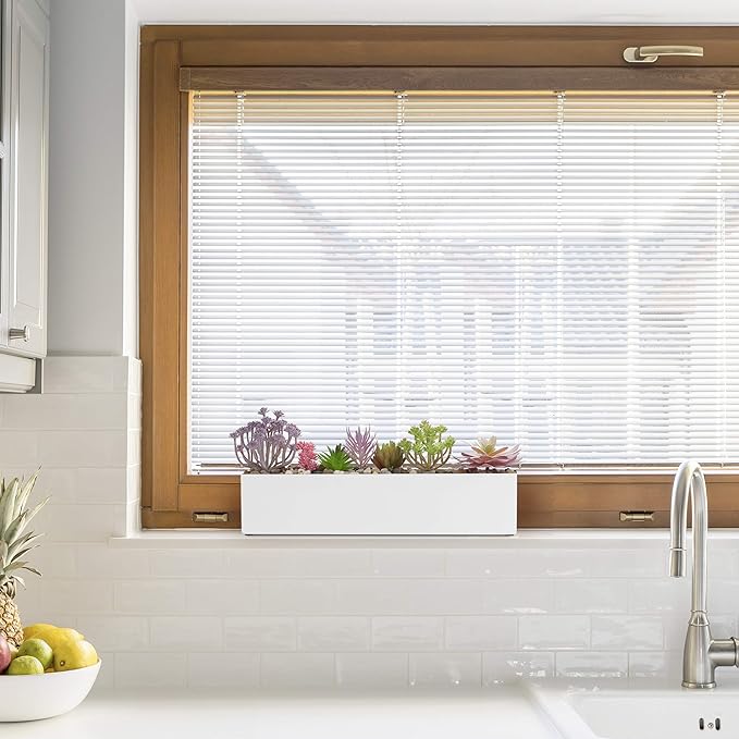 DR&Co Modern White Rectangle Planter Box, 16" Metal Planter Perfect for Succulent, Narrow Box for Table or Window Sill, Rectangular Stainless Steel Long