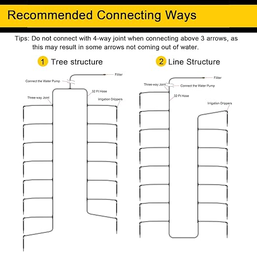 - 🌻Package Includes: 32ft Silicone Hose, Irrigation Drippers (15 pcs), 3-Way Pipe (14 pcs), Filter (1 pcs);