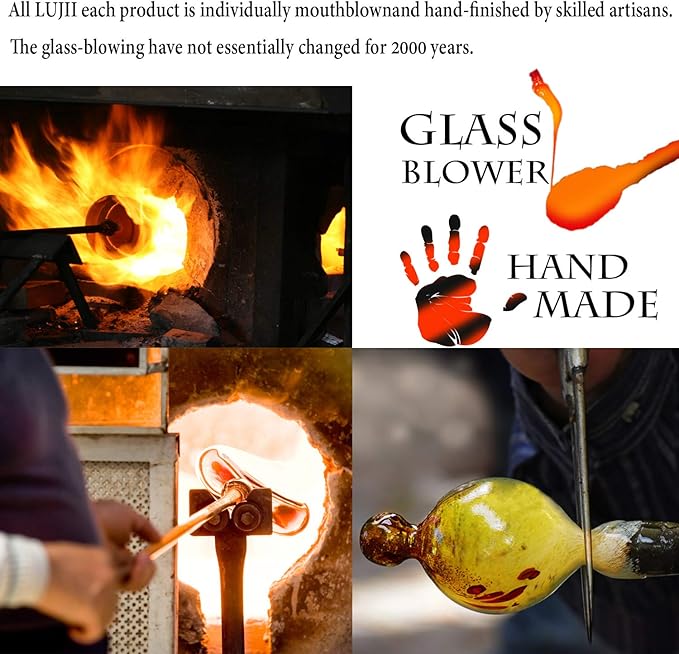 • HANDMADE BLOWN GLASS: Each product is individually blown and hand-finished by skilled artisans. The pigment is embedded in 2 layers of glass and won't fade and damage