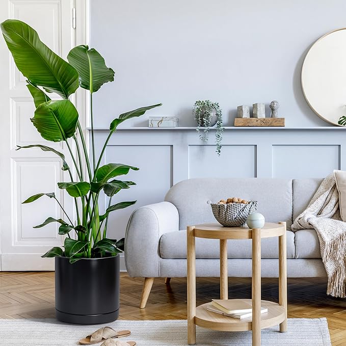 D'vine Dev 8 Inch & 10 Inch Ceramic Planter Pot for Plants with Drainage Hole and Saucer, Large Plant Pots Set, Black, 94-G-L-2