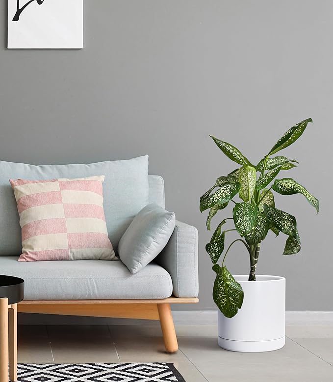 • Simple, elegant, and modern cylindrical straight round planter pot with saucer and drainage hole.