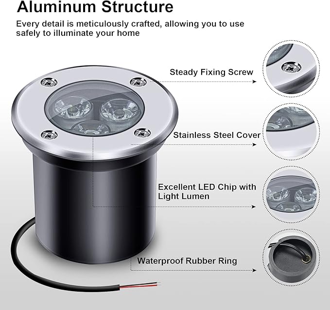 • ★IP67 Waterproof reate★:Water tight seals thick aluminum body,strong plastic and glass lens cover design withstand rainy and snowy weather; IP67 waterproof lighting fixtures, perfect for outdoor landscape path& deck lighting.