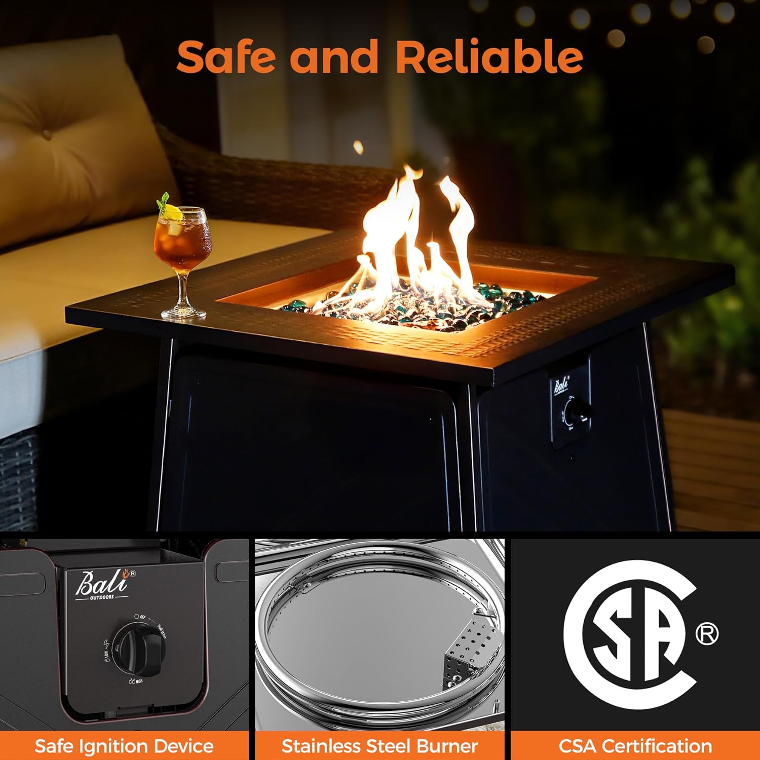 • SAFTY AND GREAT HEAT OUTPUT: Our gas fire pit table is 50,000 BTU heat output gives you enough heat to warm you up on cool morning and nights