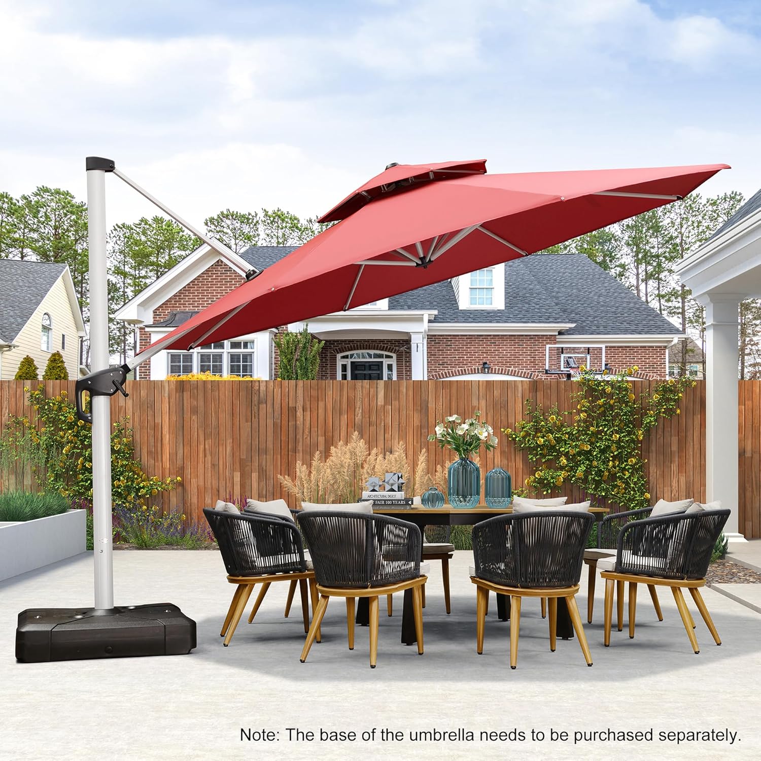 PURPLE LEAF Patio Umbrella 13 Feet Double Top Round Deluxe Offset Hanging Umbrella Outdoor Market Umbrella Garden Umbrella, Terra