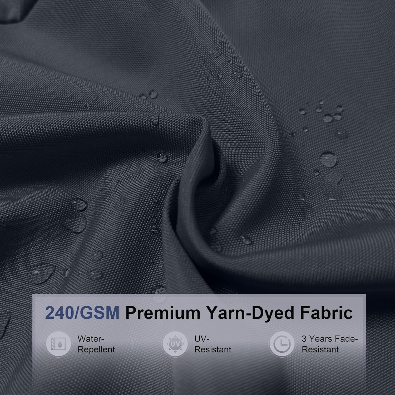 - Upgraded Fabric: 240/gsm yarn dyed polyester fabric, UV 25, water-repellent and colorfast fadeless