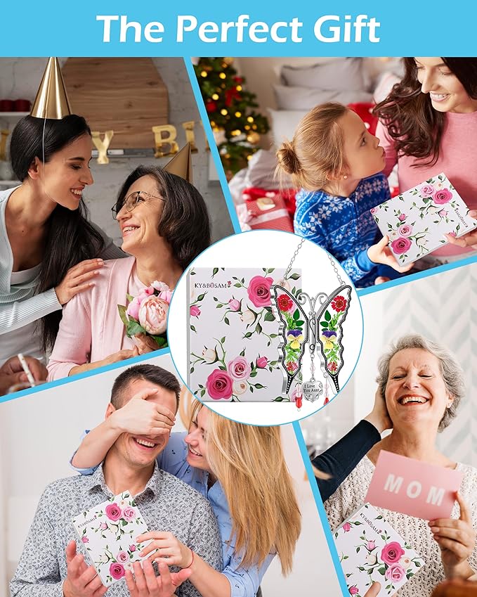 - ✅❤ Attractive and Uniquely House to live in Home decor Designed :Perfect birthday Gifts for Mom from daughter,Nana birthday gifts,Nana gifts,Gift for Christmas Mother’s Day,Gifts for women who have everything,God bless mother in-law gifts,Nanna Gifts,grandparents day gifts,As a festival gift or decor on Birthday party,Thanksgiving,Valentine`s Day,Stained Glass Panels crystal prism suncatcher for window hangings,Top gifts for women butterflies Mom gifts for daughters garden decor ,and You will receive a pink rose flower color boxes packing with a butterfly suncatcher, painted enamel butterfly and a complimentary suction cup with hook,The carries a tag with " I Love You Aunt" engraved on it.