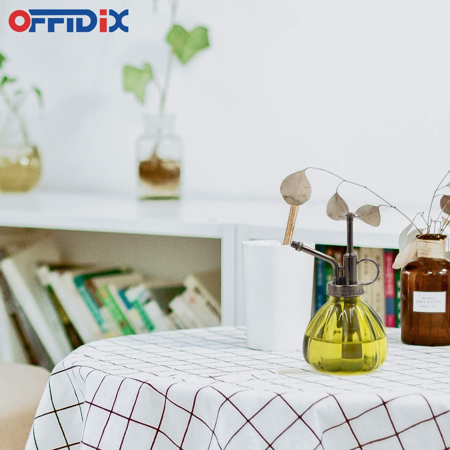 OFFIDIX Plant Mister,Glass Spray Bottle Small Watering Can Indoor 6.3" Tall Vintage Pumpkin Style Plastic Top Pump One Hand Mister Spray Bottle for Indoor Potted Plants (Olive Green)