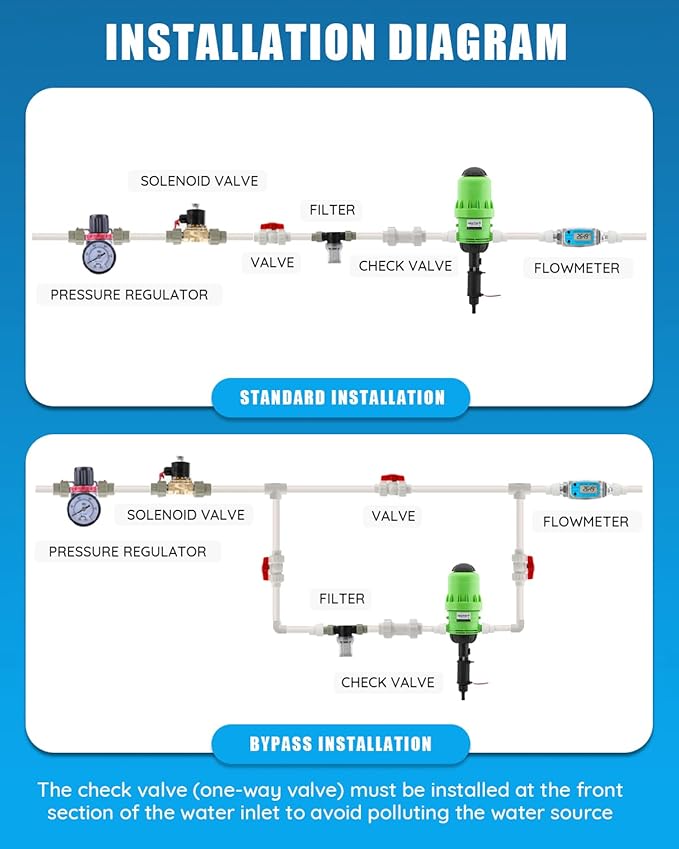 - [Attention]-The fertilizer injectors can only mix liquid but not gas. The pH of the solution should be in the range of 1-10. Each dosing pump will be tested with clean water before shipment. If the item you received is a little wet, please be assured that it does is a new product.