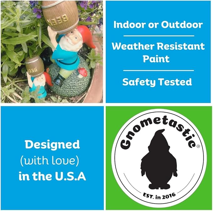 • Safety Tested: Certified Lead Free Paint and Materials. Complies with CA Proposition 65. Gnome sculpture is hand painted with detailed accents | Made in China. Designed in USA