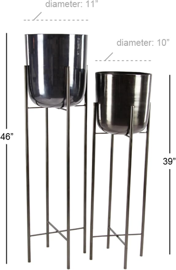 • 2 LARGE SIZE PLANTERS FOR INDOOR PLANTS: Each black metal planter measures 12L x 12W x 46H , 12L x 12W x 39H inches, and collectively weighs 14.5 lbs