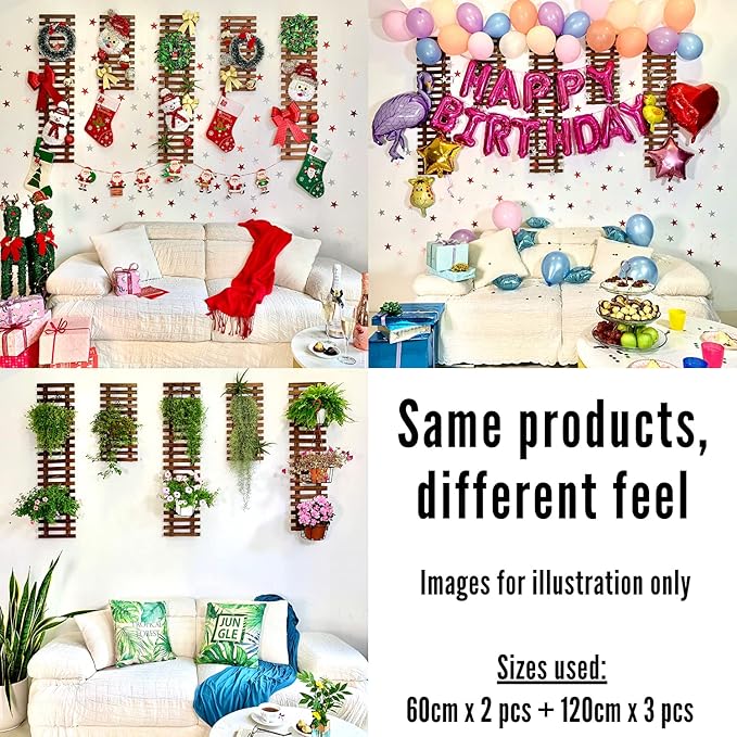 ShopLaLa Wall Planter - 2 Pack Wooden Hanging Planter for Indoor Plants Wall Mount Plant Stand Ladder Outdoor Vertical Garden Unique Live Orchid Planter Holder Display Large Wall Decor 23.6" (60cm)