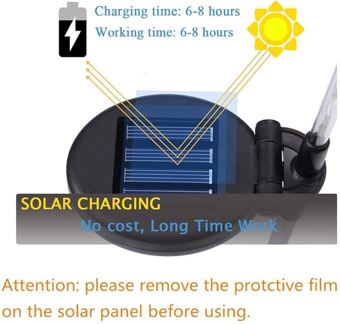 • SOLAR POWERED: This garden solar outdoor light used with a solar panel, powered by a solar battery charging system that supports 6 hours operations after fully charged. Auto Turn on/off