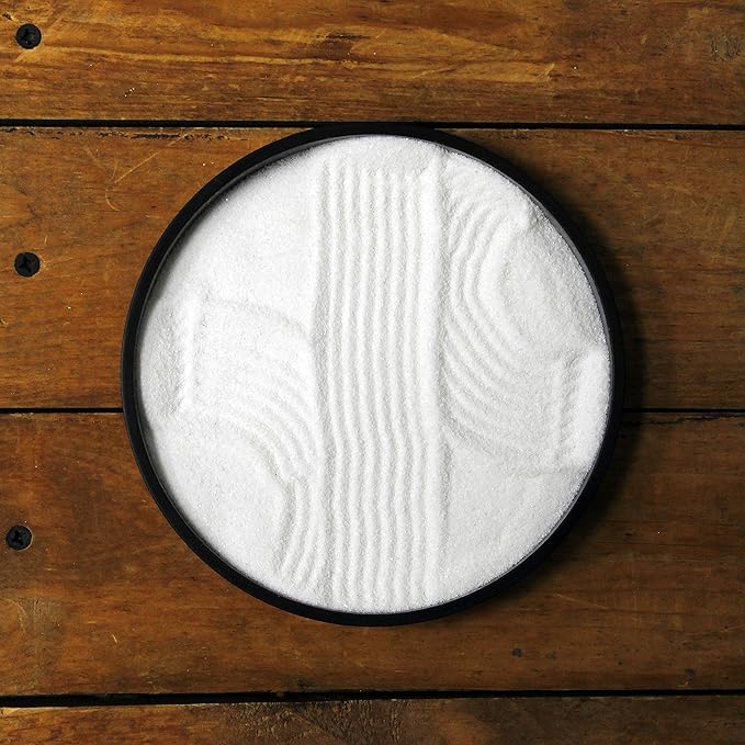 Nature's Mark Mini Zen Garden Kit for Desk with Rake, White Sand, Black Round Base, Miniature Pagoda Figure, River Rocks and Miniature Buddha Figure (6Lx6W Round B)